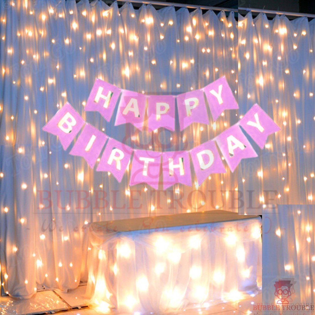 Pink Happy Birthday Banner With Fairy Light Combo (Set of 2) For Birthday Decoration for Boys, Girls, Boyfriend, Girlfriend, Husband,Kids Bday Celebrations,Bunting Tags,Flag Decorative Items Banner